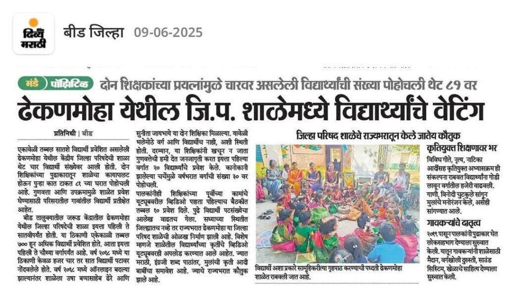 ढेकनमोहा जिल्हा परिषद शाळेचा गुणवत्तेचा चढता आलेख