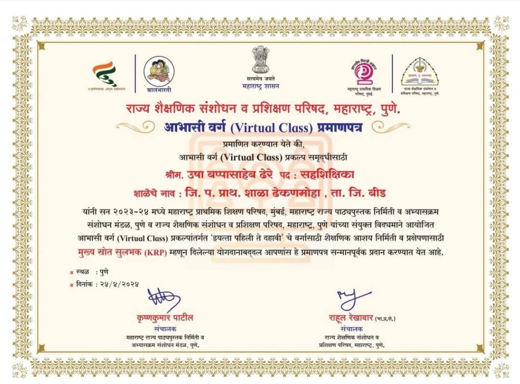 Virtual class च्या माध्यमातून राज्यातील विद्यार्थ्यांसाठी योगदान संधी,प्रमाणपत्र June 20, 2025 by ushadhere
